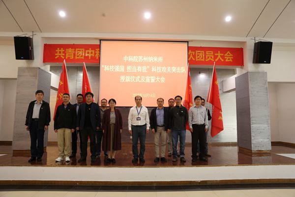 10月14日下午,蘇州納米所舉辦以老科學(xué)家命名的科技攻關(guān)突擊隊(duì)授旗儀式及宣誓大會(huì)。大會(huì)由紀(jì)委書記王啟飛主持,研究所黨委委員、各突擊隊(duì)隊(duì)員及黨支部黨員代表共約50人參加了會(huì)議。