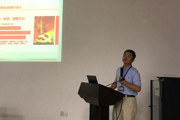 隨后,王強(qiáng)斌老師就研究生黨員如何在自己的科研生活中踐行“習(xí)近平總書(shū)記7.26講話精神”等為同學(xué)們釋疑解惑。他用黃大年同志等科研人員的先進(jìn)事跡,以及華為研發(fā)最新型海思麒麟970處理器的案例勉勵(lì)廣大研究生黨員:“認(rèn)真做好本職工作、完成科研任務(wù)、爭(zhēng)取每次實(shí)驗(yàn)成功,做出一流的成果”,這就是在踐行“習(xí)近平總書(shū)記7.26講話精神”。