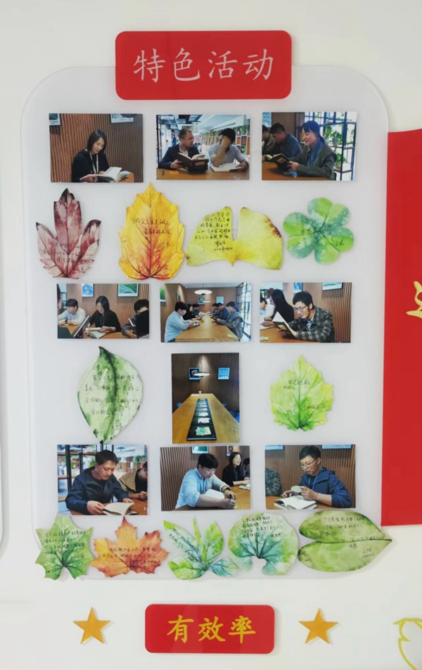 為了增加活動的趣味性和互動性,支部還特別為每位黨員同志準備了一張精美的“葉脈書簽”。并鼓勵大家在閱讀過程中,記錄下自己的感悟,形成“葉脈金句”,分批集中展示分享。4月第一批《把信送給加西亞》主題的“葉脈金句”在黨建展板的“特色活動”欄位展出后,吸引了眾多師生駐足品讀。后續(xù),支部將持續(xù)更新“葉脈金句”內(nèi)容,讓凝聚智慧的點滴金句點亮智慧人生。