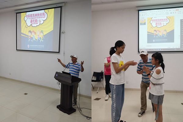 7月26日上午,蘇州納米所邀請(qǐng)劉喜堯先生來所給暑托班的孩子們上吳語課,豐富孩子們的暑期生活。劉喜堯先生是相聲大師馬季的江南弟子,昆曲“繼”字輩演員,一直致力于推廣吳語,傳播江南文化。