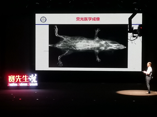 針對納米生物醫(yī)學的發(fā)展,王強斌簡單介紹了團隊曾獲得江蘇省科學技術一等獎的近紅外二區(qū)熒光醫(yī)學成像技術在疾病診斷、治療方面的創(chuàng)新突破和廣泛應用;介紹了納米機器人在生命健康方面的最新進展和應用前景。原位、實時的小動物活體醫(yī)學影像、DNA納米機器人治療腫瘤、光驅動納米機器人……,激發(fā)了廣大聽眾的無限好奇和極大興趣。