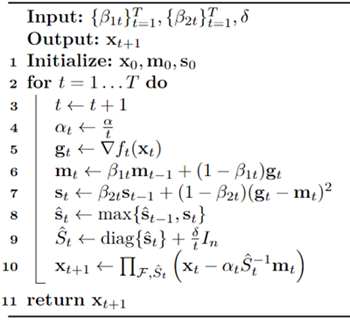 中國(guó)科學(xué)院蘇州納米技術(shù)與納米仿生研究所劉欣研究員、周揚(yáng)帆等針對(duì)學(xué)習(xí)率自適應(yīng)的隨機(jī)梯度下降算法Adabief在強(qiáng)凸條件下的收斂速度是否可以進(jìn)一步提高的問(wèn)題進(jìn)行了首次嘗試,并給出了肯定的答案。團(tuán)隊(duì)利用損失函數(shù)的強(qiáng)凸性,提出了一種新的算法FastAdaBelief(算法偽代碼如圖1所示),該算法在保持良好的泛化能力的同時(shí),具有更快的收斂速度。