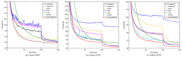 該團(tuán)隊(duì)根據(jù)理論證明的結(jié)果,進(jìn)行了一系列的實(shí)驗(yàn)研究,驗(yàn)證了所提出的算法的優(yōu)越性。首先,在softmax回歸問(wèn)題上的實(shí)驗(yàn)驗(yàn)證了FastAdaBelief比其他算法的收斂速度更快(如圖2所示);然后,在CIFAR-10數(shù)據(jù)集上完成了多組圖像分類任務(wù),結(jié)果表明,在實(shí)驗(yàn)對(duì)比算法中,FastAdaBelief具有最快的收斂速度(如圖3所示),并且具有最好的泛化能力(如圖4所示);最后,在Penn Treebank數(shù)據(jù)集上的文本預(yù)測(cè)任務(wù)中,FastAdaBelief算法可以最快訓(xùn)練出深度模型,并且得出的模型具有最小的混沌度(如圖5所示)。重要的是,該團(tuán)隊(duì)發(fā)現(xiàn)FastAdaBelief在損失函數(shù)為強(qiáng)凸和非凸的情況下收斂速度都是最快的,因此證明了它作為一種新的基準(zhǔn)優(yōu)化算法的巨大潛力,可以廣泛應(yīng)用于各種深度學(xué)習(xí)的場(chǎng)景中。