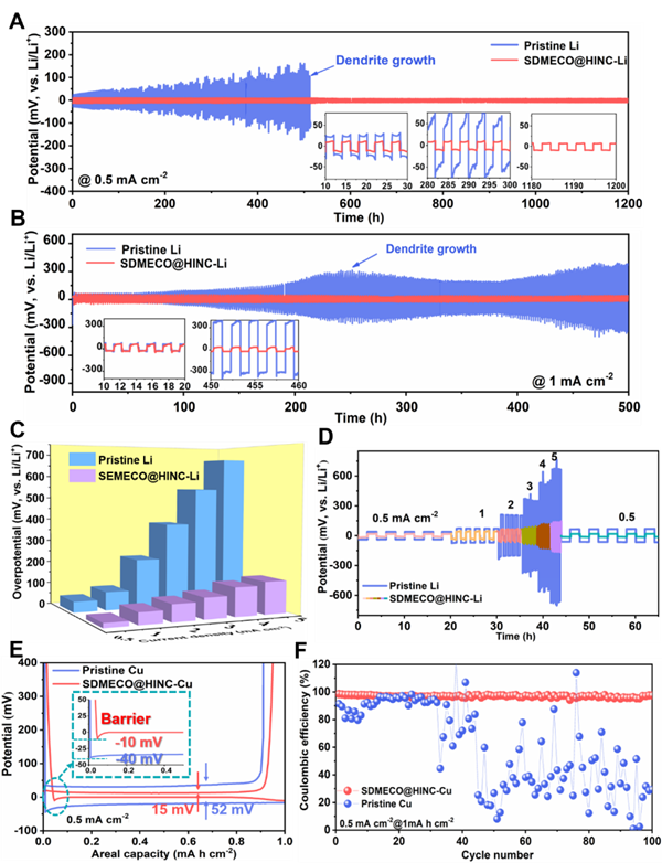 圖3 4f電子重構(gòu)的SDMECO@HINC對(duì)鋰金屬電極的電化學(xué)穩(wěn)定性和壽命的促進(jìn)作用