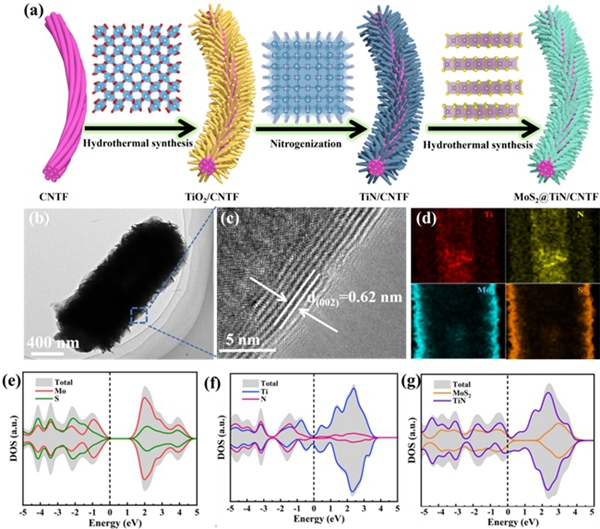 圖1. MoS2@TiN/CNTF合成及DOS圖