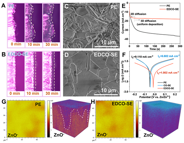 圖3. 通過添加EDCO增強Zn||Zn和Zn||Cu電池的電化學(xué)性能