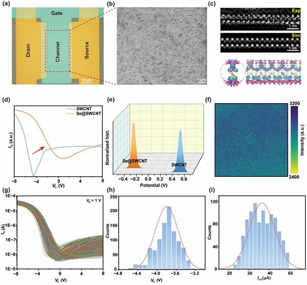 圖2. Se@SWCNTs?光電晶體管的大面積均勻性表征