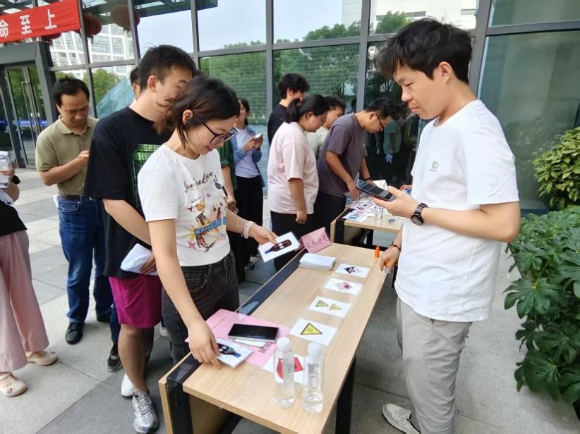 6月16日全國“安全宣傳咨詢?nèi)铡?/span>,研究所分發(fā)安全知識折頁、小折扇、泄漏應(yīng)急處置包等宣傳材料,普及安全知識。開展“安全隱患隨手拍,人人都是吹哨人”活動,通過拍照等方式記錄安全隱患,積極以問題為導(dǎo)向,提出隱患整改的建議,并反饋至相關(guān)責任部門,著力營造人人關(guān)注安全的氛圍。