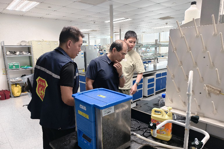 檢查組圍繞科研生產(chǎn)安全、設(shè)備設(shè)施使用安全、基礎(chǔ)設(shè)施安全管理、節(jié)假日值班情況等幾個方面開展安全檢查工作,查閱了安全相關(guān)文件、制度,并深入工作一線進行現(xiàn)場檢查,檢查范圍包括消防控制室、危化品庫房、氫氣站、實驗室和辦公樓等場所。重點對所區(qū)各實驗室的安全管理制度執(zhí)行情況進行檢查,確保危化品使用和存儲符合規(guī)定;危險廢物的處理要嚴格按照相關(guān)規(guī)定進行,防止對環(huán)境和人員造成危害。在改造施工現(xiàn)場,檢查組對現(xiàn)場防護情況、臨時用電及特種作業(yè)人員資質(zhì)情況進行檢查,確保流程合規(guī),安全防護到位。公共基礎(chǔ)設(shè)施檢查中,檢查組對所區(qū)消防泵房、配電房、?;穾旆?、氫氣站等基礎(chǔ)設(shè)施的使用情況、設(shè)施維保和人員值班情況進行檢查,確保假期間安全有效運行。對于發(fā)現(xiàn)的安全隱患和問題,要求相關(guān)部門立查立改,并跟蹤整改情況,以確保整改到位。