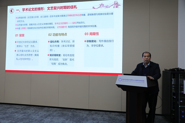 首先,黨委書記鄧強作《“破四唯”背景下,如何正確看待科技論文》專題報告。報告主要闡述了科技論文的功能價值以及如何正確看待“破四唯”中“不唯論文”,他指出,高水平論文和獎項仍然是展現(xiàn)科技工作者學(xué)術(shù)成就的重要途徑,但需避免將其作為唯一評價標(biāo)準(zhǔn),全所科研人員要強化科研工作及成果的應(yīng)用價值,不簡單以是否發(fā)表論文作為主要評價指標(biāo),而是要結(jié)合服務(wù)國家戰(zhàn)略需求、突破關(guān)鍵核心技術(shù)、解決經(jīng)濟(jì)社會發(fā)展等重大問題進(jìn)行綜合評價。