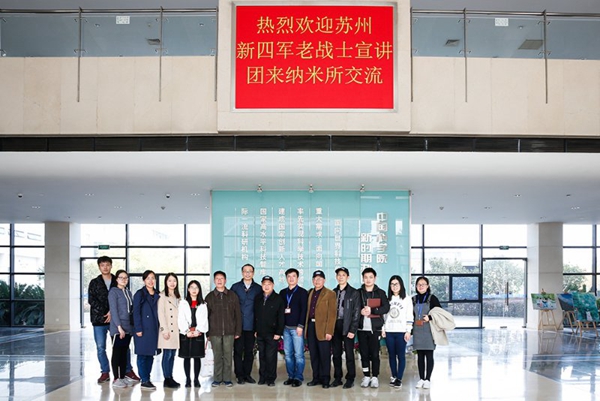 為進(jìn)一步學(xué)習(xí)領(lǐng)會(huì)黨的十九大精神,學(xué)習(xí)分享兩會(huì)精神,并深入了解黨的歷史,3月28日上午,應(yīng)第十一黨支部(先進(jìn)材料部黨支部)的邀請(qǐng),蘇州市新四軍歷史研究會(huì)老戰(zhàn)士宣講團(tuán)來(lái)到我所開展“弘揚(yáng)吳運(yùn)鐸鐵軍精神,做新時(shí)代科技創(chuàng)新排頭兵”主題宣講交流活動(dòng)。納米所黨委副書記兼紀(jì)委書記王啟飛、黨辦主任王英熱情接待了來(lái)訪的宣講團(tuán)各位成員。