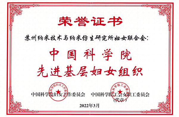 3月7日上午,中國(guó)科學(xué)院婦女工作委員會(huì),中國(guó)科學(xué)院工會(huì)女職工委員會(huì)舉辦了心系“國(guó)家事”肩扛“國(guó)家責(zé)”先進(jìn)事跡報(bào)告會(huì)暨表彰大會(huì)。蘇州納米所婦聯(lián)榮獲“中國(guó)科學(xué)院先進(jìn)基層?jì)D女組織”稱號(hào)。