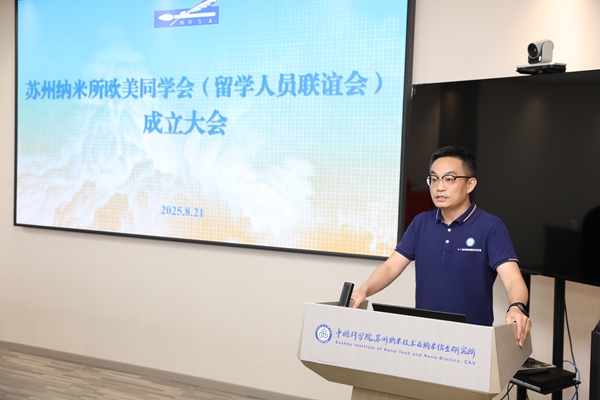 8月21日上午,蘇州納米所召開歐美同學(xué)會(留學(xué)人員聯(lián)誼會)成立大會。蘇州市委統(tǒng)戰(zhàn)部副部長、市僑辦主任王建方,蘇州市歐美同學(xué)會秘書長鐘巍,蘇州工業(yè)園區(qū)宣傳和統(tǒng)戰(zhàn)部副調(diào)研員陳翔,中國科學(xué)院南京分院黨建工作處高級業(yè)務(wù)主管張一生出席大會。蘇州納米所黨委書記鄧強(qiáng),黨委委員張珽、孫錢以及全體會員代表參加會議。大會由所紀(jì)委副書記、黨辦主任王英主持。