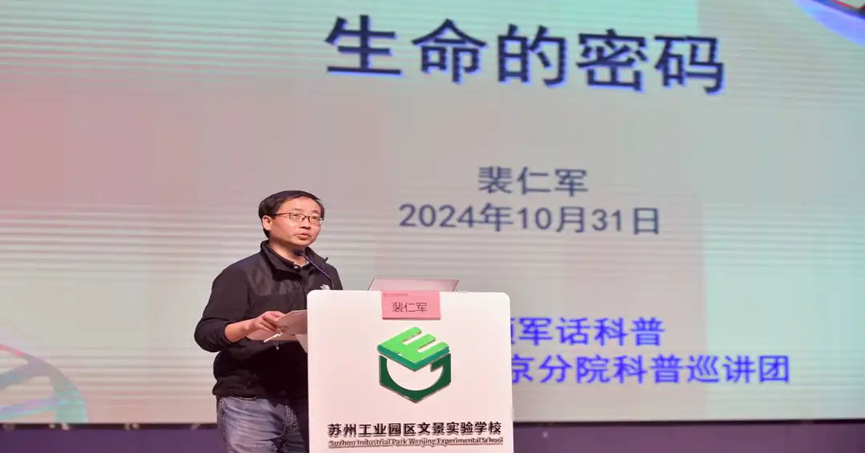 另外,2024年5月13日下午,蘇州中學(xué)園區(qū)?!拔黢R講堂”項(xiàng)目隆重重啟。中國(guó)科學(xué)院納米所裴仁軍研究員為該校高二、高一、錢(qián)學(xué)森班、西交大少年班、西馬國(guó)際班學(xué)生作了題為《生命的密碼》的精彩演講。
