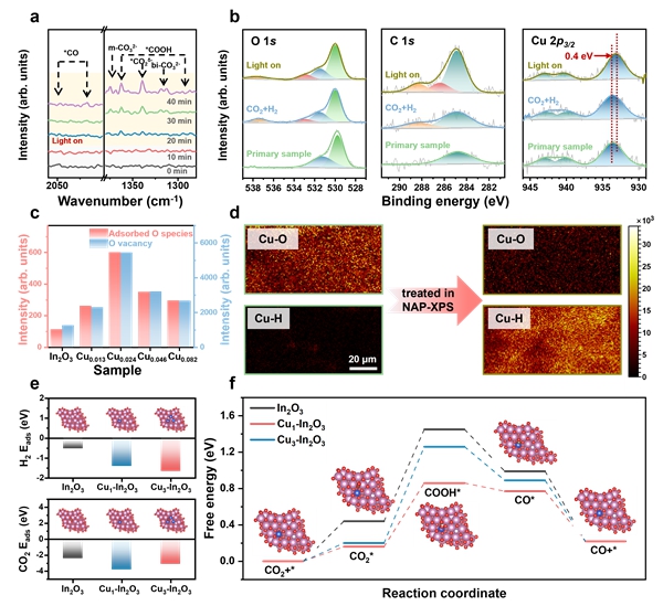 圖4. 反應機理的原位光譜表征和理論計算模擬