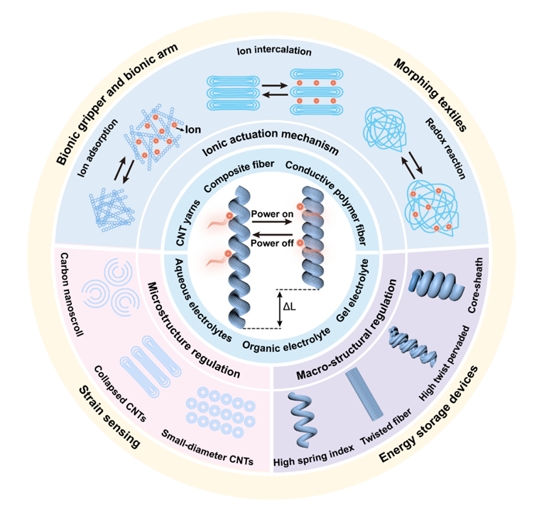 圖1. 電化學(xué)人工肌肉纖維的材料、機(jī)制、結(jié)構(gòu)及應(yīng)用領(lǐng)域概述