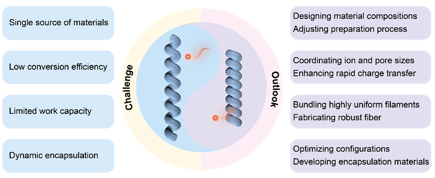 圖2. 電化學(xué)人工肌肉纖維的關(guān)鍵挑戰(zhàn)及對(duì)應(yīng)解決策略