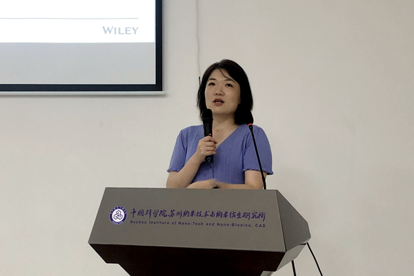 7月20日,Wiley出版社的期刊主編姜玥玥博士和副主編施璐博士來(lái)蘇州納米所交流,并作題為“Wiley材料學(xué)期刊論文發(fā)表”的講座。所內(nèi)相關(guān)領(lǐng)域的老師及同學(xué)參加了此次講座。
