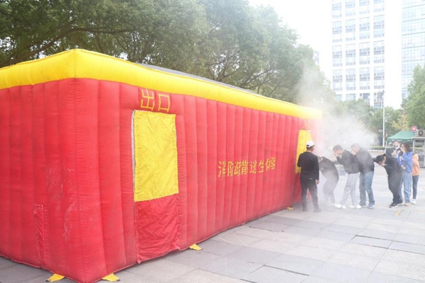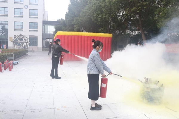 當日下午3點,火災警報和廣播拉響,樓內人員在疏散引導員的引導下使用毛巾掩住口鼻,迅速有序從各樓緊急疏散通道撤離到疏散點,成功完成了緊急疏散逃生演習。隨后,本次活動特邀外部消防專業(yè)同志針對本次演練進行點評,重點強調了疏散時應注意的事項,身處火場的逃生方法,并且詳細講解了不同類型滅火器的使用方法。參加演練的職工學生踴躍練習使用各類滅火器,參與逃生屋體驗,通過體驗式安全培訓,感受火場逃生的具體情境,了解火場逃生的基本原則,熟悉逃生指示燈的使用,掌握找到逃生出口的方法,將理論與實踐相結合,真正提高了消防逃生的能力,活動獲得了參與人員的一致好評。