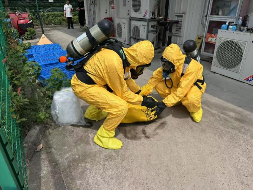 6月3日研究所開(kāi)展實(shí)驗(yàn)室?;?/span>泄漏應(yīng)急、火災(zāi)應(yīng)急演練。6月24日開(kāi)展?;穾?kù)房應(yīng)急泄漏演習(xí)。各部門(mén)人員按預(yù)案職責(zé)開(kāi)展工作,全力實(shí)施救援,防護(hù)設(shè)備穿戴迅速,查找泄漏源,控制擴(kuò)散范圍,現(xiàn)場(chǎng)應(yīng)急操作緊張有序。進(jìn)一步提高所內(nèi)員工對(duì)突發(fā)事件的應(yīng)急處理能力,加強(qiáng)員工對(duì)應(yīng)急流程的熟悉程度,強(qiáng)化員工對(duì)應(yīng)急物資的使用技能。