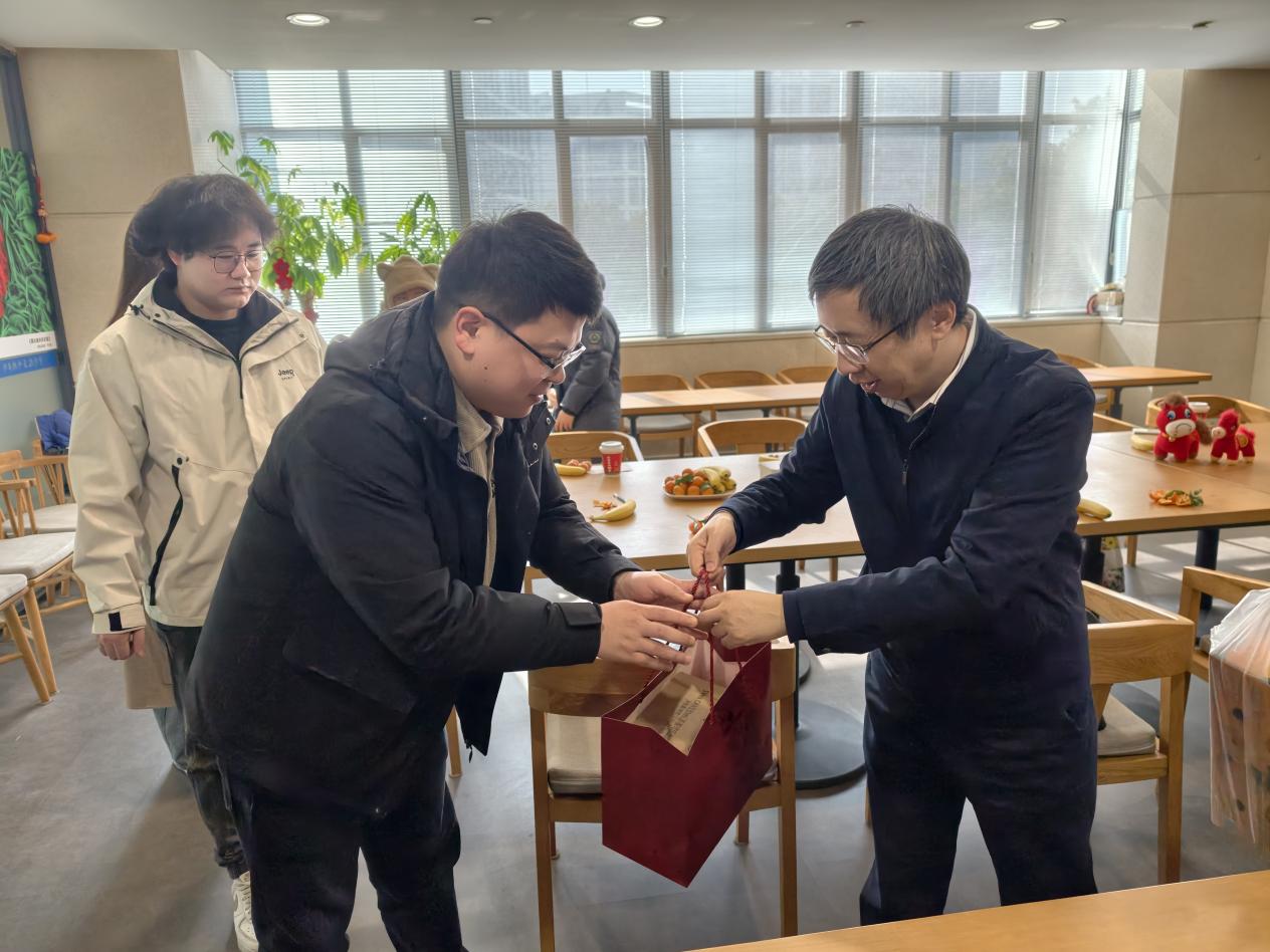 活動現(xiàn)場暖意融融,氛圍熱烈而溫馨。鄭企雨代表研究所向留所學(xué)子表示誠摯的新春問候和美好的節(jié)日祝福。交流過程中,他與同學(xué)們親切談心,詢問大家的學(xué)業(yè)進(jìn)展、假期科研安排和日常生活狀況,傾聽同學(xué)們在科研實踐、生活保障等方面的困惑與訴求,并結(jié)合自身經(jīng)歷,鼓勵同學(xué)們珍惜科研時光,腳踏實地、精益求精,在新的一年里攻克難關(guān)、收獲成長。同時他叮囑大家假期中注意人身安全、合理安排作息,希望大家度過一個平安、溫暖、有意義的馬年春節(jié)。最后,鄭企雨為留所學(xué)生送上新春慰問,將研究所的關(guān)懷與祝福傳遞到每一位學(xué)子手中。