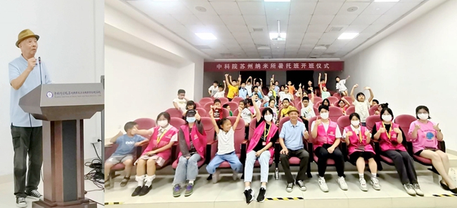 7月21日,蘇州知名表演藝術(shù)家劉喜堯先生受邀來到蘇州納米所,專程為暑托班的孩子們講述老科學(xué)家的故事。蘇州院士多達126位,是著名的“狀元之鄉(xiāng)”,劉老僅用一只話筒,全程脫稿演講,生動講述了蘇州籍的“兩彈一星”元勛王淦昌、王大珩、程開甲、楊嘉墀,和國家最高科學(xué)技術(shù)獎?wù)芦@得者錢七虎、顧誦芬等老一輩科學(xué)家科技報國、建立功勛的故事,同時他還與孩子們分享了大家身邊的蘇州納米所女科學(xué)家李清文的先進事跡。通過講述科學(xué)家們的勵志故事,讓暑托班的孩子們更加深刻了解科學(xué)家在攻堅克難中鑄就胸懷祖國、勇攀高峰的信念,激發(fā)孩子們探索科學(xué)的興趣,揚起“小小科學(xué)家”的夢想之舟。