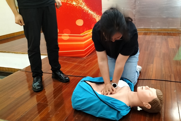 自動體外除顫器(AED)是一種便攜式的醫(yī)療設(shè)備,可以診斷特定的心律失常,并且給予電擊除顫,是可被非專業(yè)人員使用的用于搶救心臟驟停患者的醫(yī)療設(shè)備。培訓現(xiàn)場,培訓老師從應(yīng)急救護“黃金4分鐘”入手,利用真實案例向大家強調(diào)了掌握急救知識的重要性。接下來培訓老師為大家講解了心肺復蘇急救要領(lǐng)、除顫器工作原理等基礎(chǔ)知識,并利用人體模型示范了心肺復蘇術(shù),同時使用AED進行心肺復蘇演練操作。隨后,參訓人員在培訓老師的指導下進行現(xiàn)場模擬演練,分批對人體模型開展胸外按壓和AED實操,進一步掌握處理突發(fā)事故的技能,為今后挽救生命、自救互救打下堅實基礎(chǔ)。
